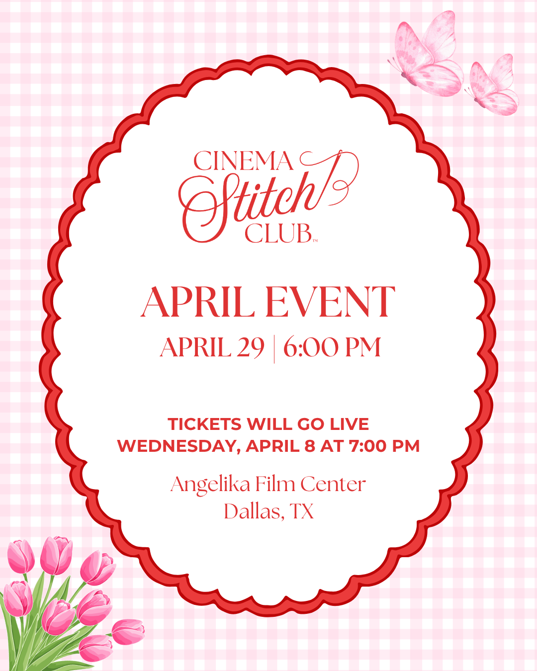 Tickets will go on sale one week from today, April 8, at 7:00 pm! You can purchase tickets through the link on our website. We are also so excited to be partnering with a brand new needlepoint business for this event, so stay tuned for more details and a first look at all the goodies! 👀